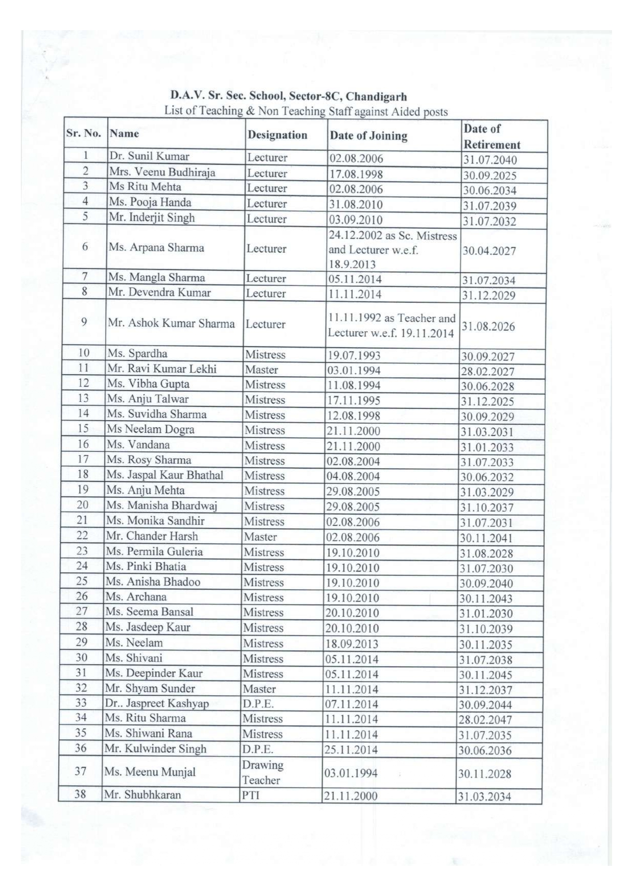 The sanctioned Grant-in-Aid Staff of the School includes the posts of a Principal, 21 Lecturers, 48 Teachers, 16 Non Teachers, 01 PTI, 03 DPEs and 03 Work Experience Teachers. The Staff of the School is highly qualified with many holding post graduate and doctoral degrees. Each Class is allotted 48 Periods a week with separate allocation of periods for Computer/Library.