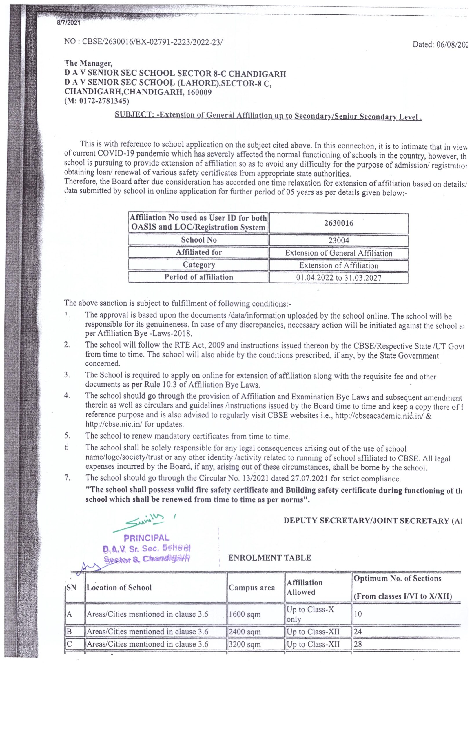 D.A.V. Senior Secondary School (Lahore) Co-Educational (Govt. Aided) Sector 8C, Chandigarh 160009